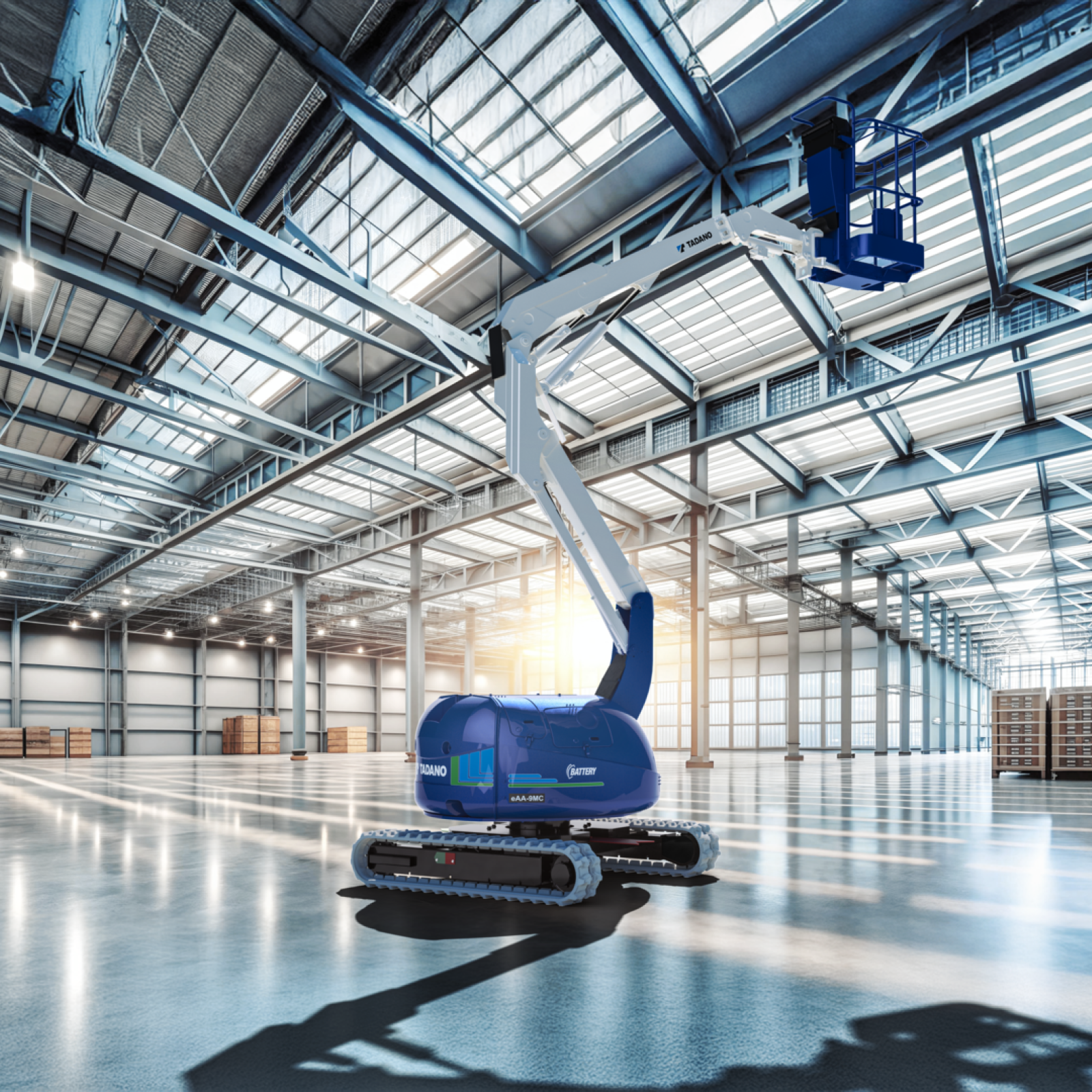 De volledig elektrische eAA-9MC werkt op een emissievrije wisselstroommotor met verbeterde batterijprestaties en is een compacte knikarm met rupsbanden die is ontworpen voor bouwtoepassingen binnenshuis, ondergronds en in stedelijke omgevingen waar geluid en uitstoot een rol spelen.